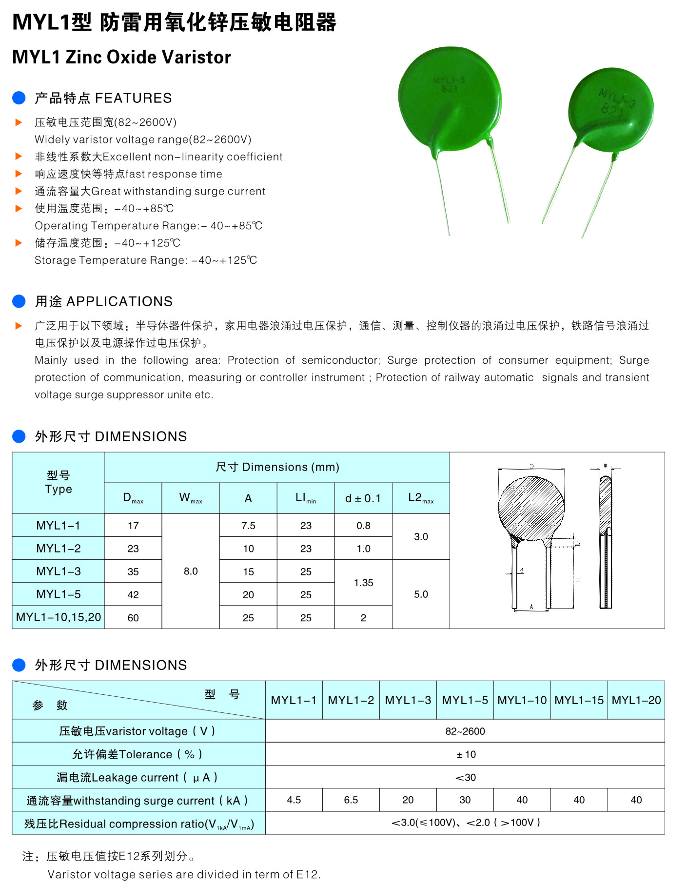 MYL1型 防雷用氧化鋅壓敏電阻器