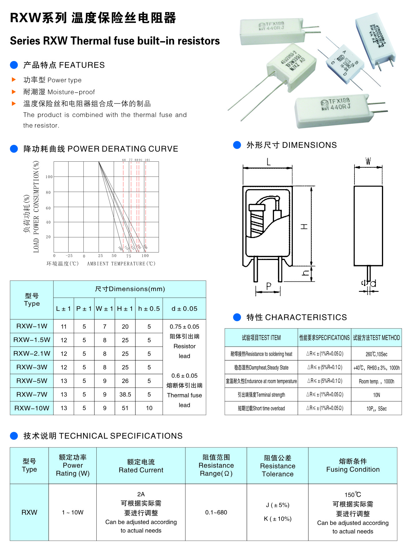 RXW系列 溫度保險(xiǎn)絲電阻器