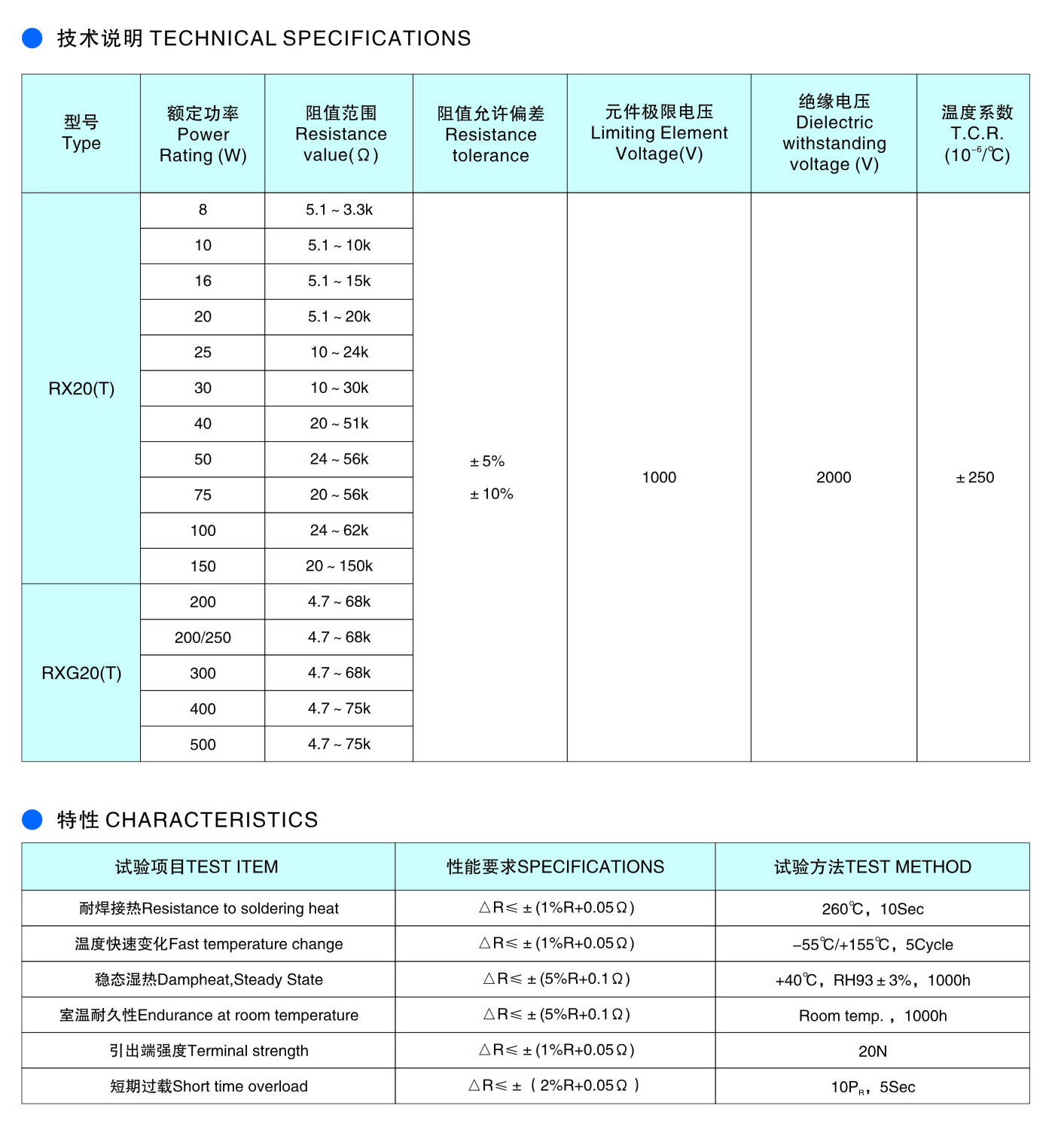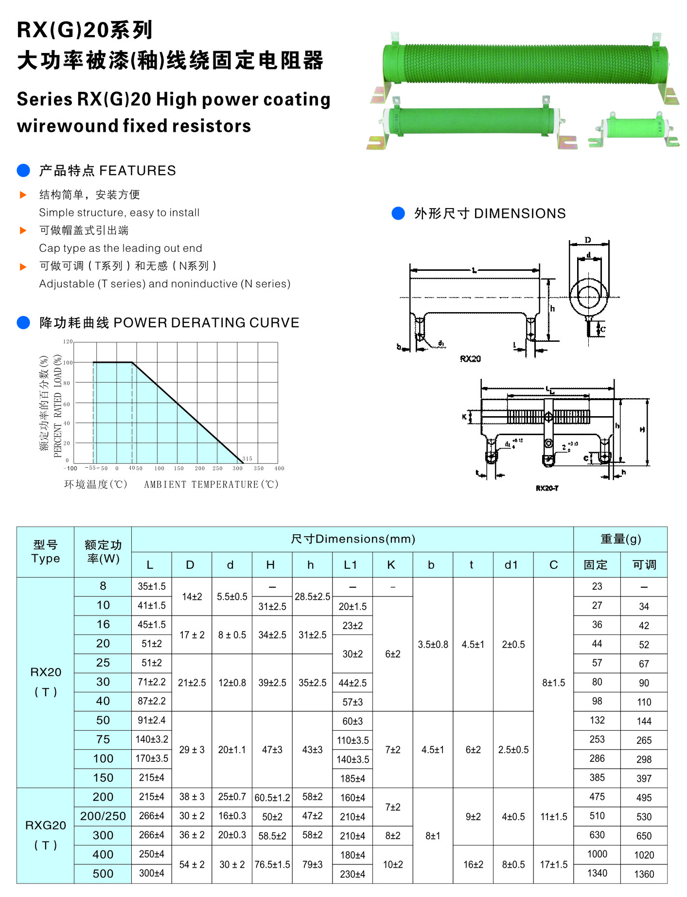 RX(G)20系列 大功率被漆(釉)線繞固定電阻器